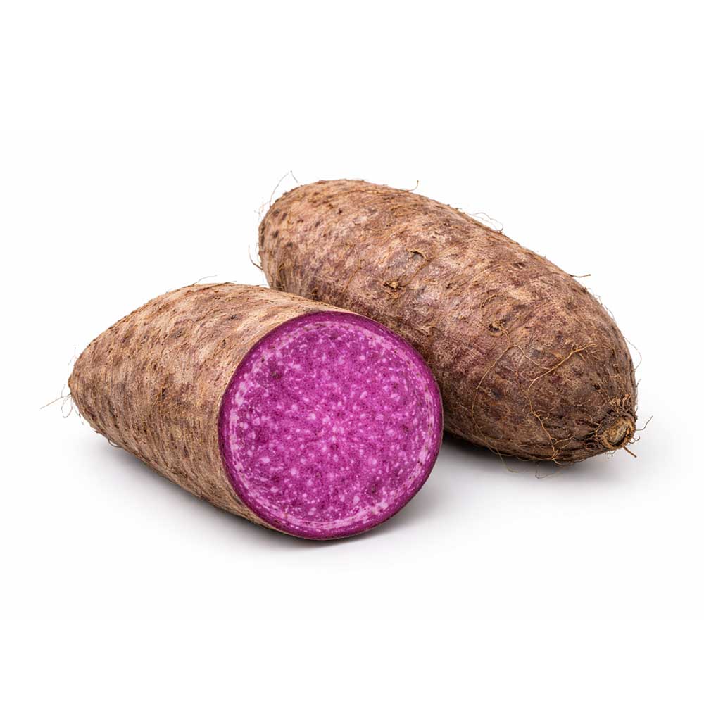 Fialové batáty jsou nejen vizuálně úchvatné, ale také nutričně bohatší než běžné sladké brambory. Svoji sytě fialovou barvu mají díky vysokému obsahu antokyanů (stejné antioxidanty jako v borůvkách). Mají o něco pevnější texturu a jejich chuť je příjemně sladká s jemným oříškovým nádechem.
